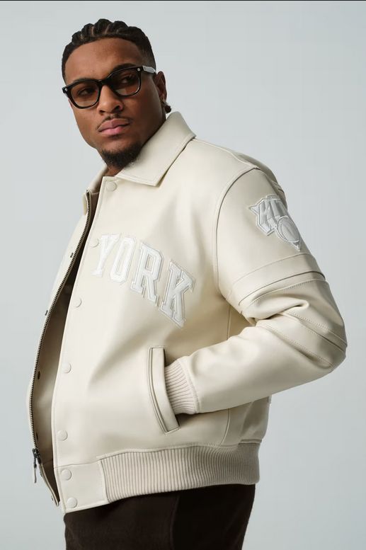 Нам, честно, больше всего зашли бомберы. Везде винтажные принты и цветовые схемы, которые отсылают к разным эпохам Knicks — от старой школы (когда их еще наши родители смотрели по рябящим голубым экранам) до современности.