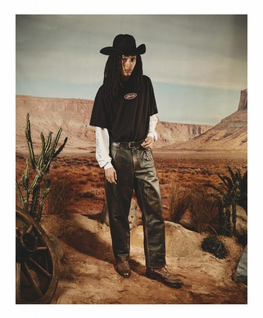 Там все в духе Tyler the Creator / Golf Wang, но чуть приглушеннее: кислотные цвета, знойные, плавящиеся под солнцем западные прерии с бычьими черепами, графика в стиле гаражных афиш, потертые джинсовки c патчами и винтажные трек-куртки.