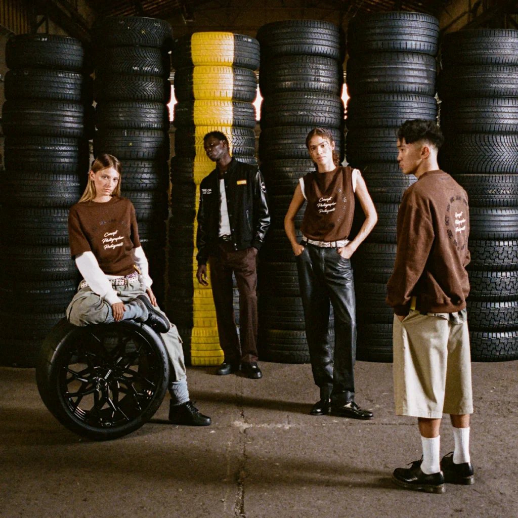 В начале года легендарные Pirelli (которые шины производят) решили активно взяться за фэшон и выложить на стол свой крепкий итальянский ДНК. Подвижки были и до этого, например, коллабы с гонщиками и художниками или Pirelli Calendar — главный модный арт-календарь мира (в нём снимались Наоми Кэмпбелл, Кейт Мосс и Сальма Хайек).