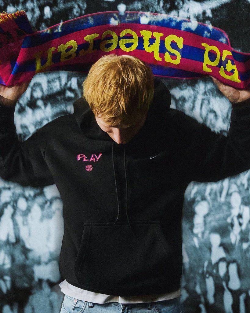 А осенью лицом прославленного каталонского мерча стал тот рыжий парень с гитарой — Эд Ширан. После разноса от Трэвиса выглядит скучновато, но фанатам наверняка зайдет. К тому же, такие джерси в любом случае на ресейле в любом случае потом улетят за x5 чисто за счет имени артиста и брендов. Например, Трэвис-версия сейчас на StockX стоит как жирный рекламный бюджет на неделю.