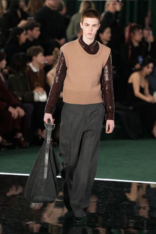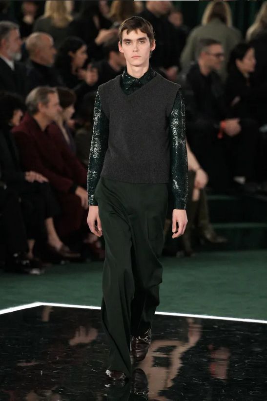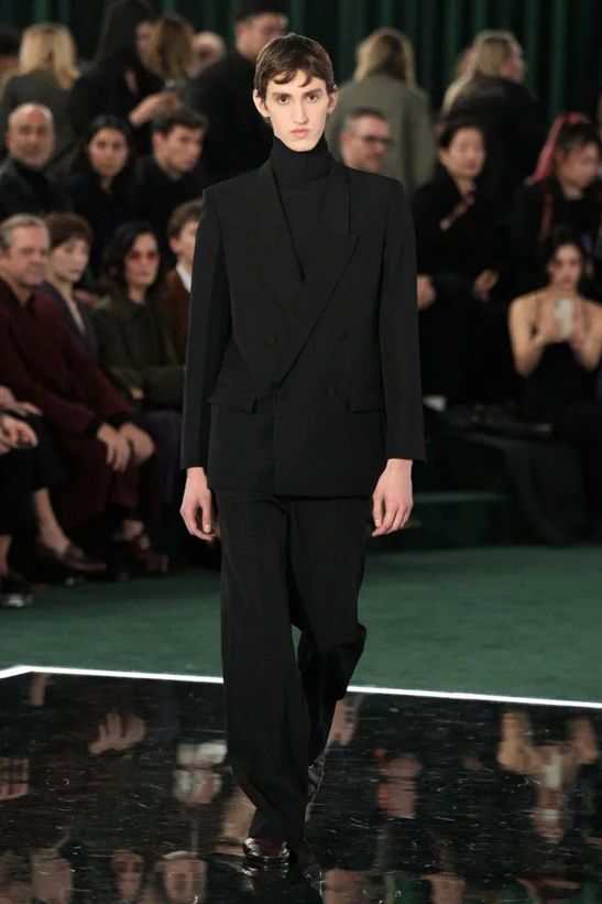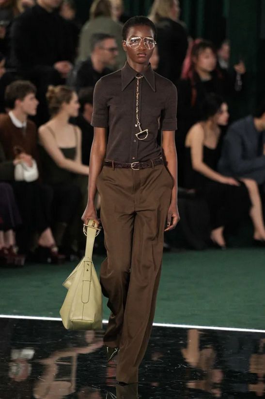 Шоу FW2025 делала внутренняя дизайн-студия Gucci на фоне ожидания нового креативного директора. Поэтому здесь было меньше безумия, экспериментов (которые, как мы знаем, не всегда удачные) и больше проверенной силы бренда — костюмы, пальто, правильные пропорции, фирменные коды модного дома. То есть все достаточно привычно, красиво и носибельно.