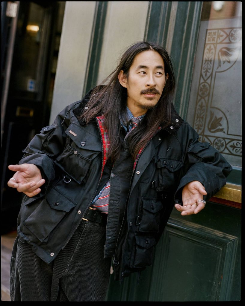 В коллабке есть и интерпретация классической куртки Bedale от Barbour — укороченная, с modern-силуэтом, но все еще waxed и готовая к суровей погоде.