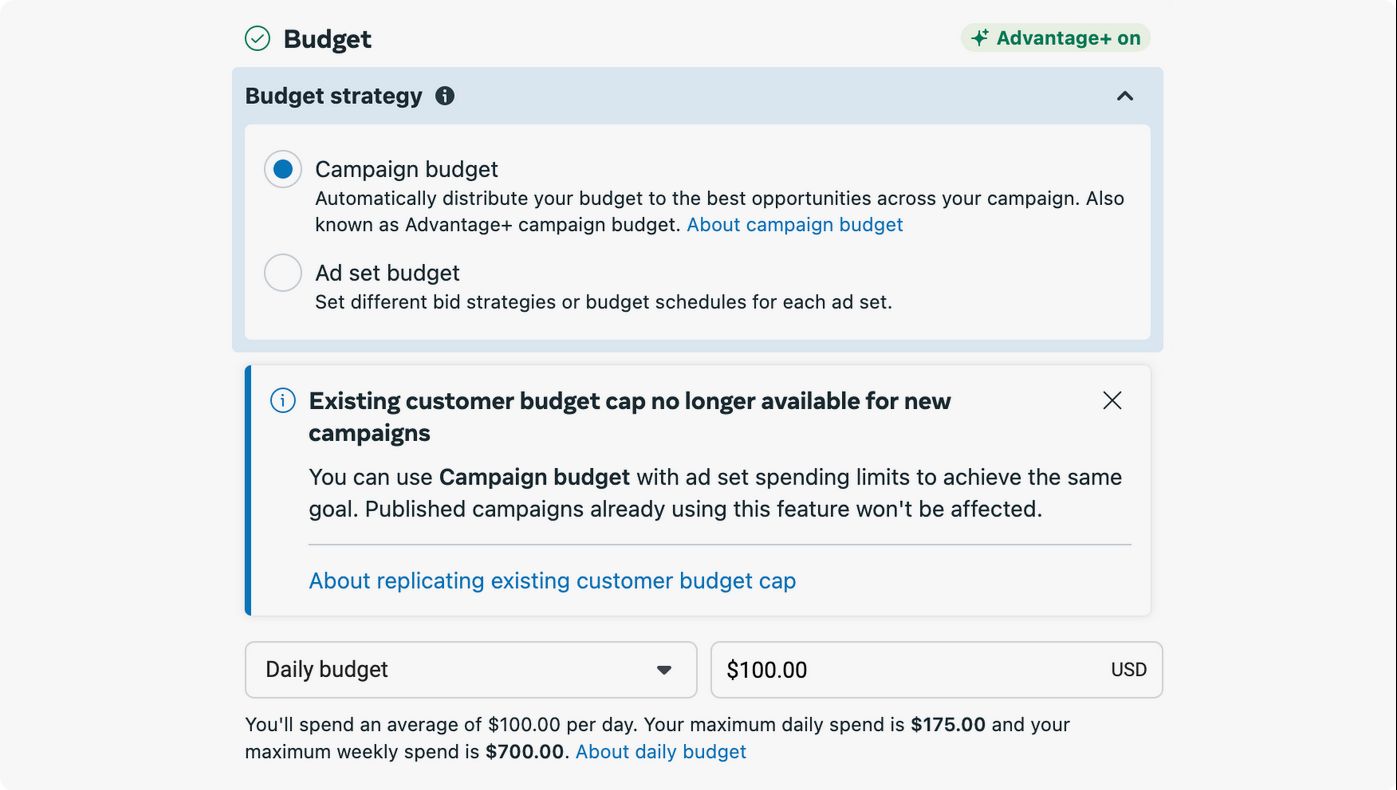Advantage+ Campaign Budget снижает стоимость привлечения клиента на 4,6% согласно данным Meta, но новичкам мы советуем начинать с ручного распределения бюджета. Так вы поймете механику работы системы и сможете точно определить, какие группы объявлений приносят результат.