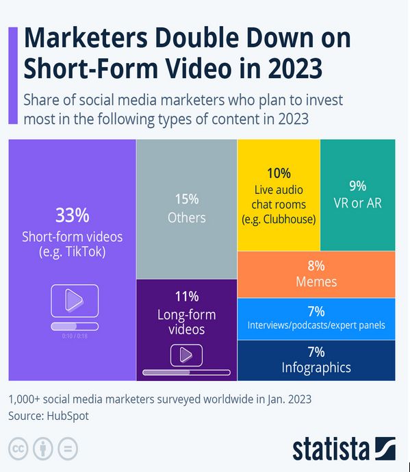 Поэтому и бренды начинают строить узнавание не через сюжет, а через мгновенные маркеры — визуальные, смысловые и эмоциональные. Ну а сдвиг в сторону коротких видео произошел гораздо раньше 2026, конечно. Момент Stasista поймали еще в 2023 в бородатые времена, когда даже Clubhouse, прости господи, кто-то рейтил: