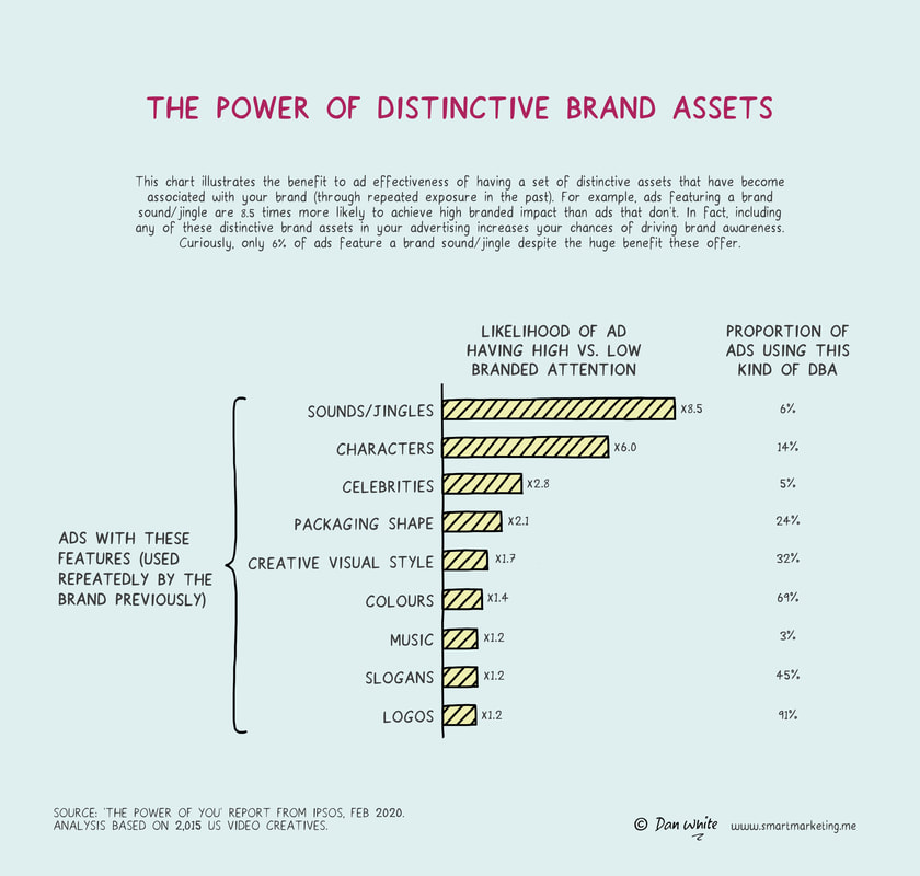 Distinctive assets: узнаваемость без логотипа и длинных историй