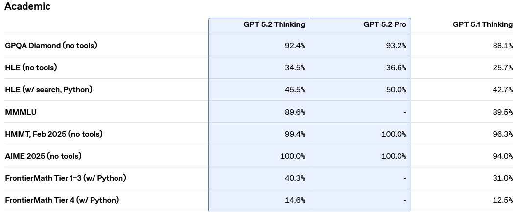 OpenAI в релизе предлагает нам три варианта GPT-5.2: