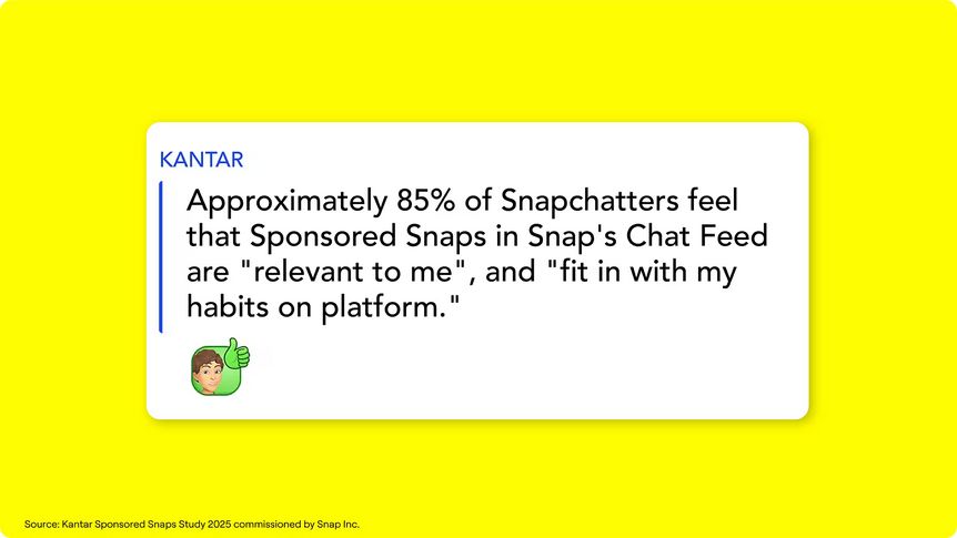 Да, именно это Snapchat предлагает сделать в еще одном блоке статьи — Campaigns, Made More Human. Тут они приводят данные Kantar, что около 85% Snapchatters считают Sponsored Snaps релевантными и “вписывающимися в привычки”.