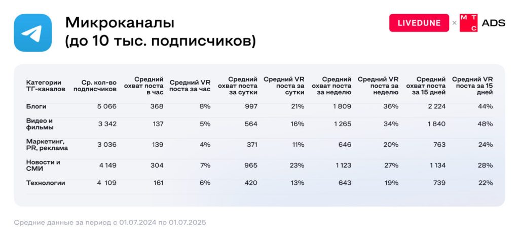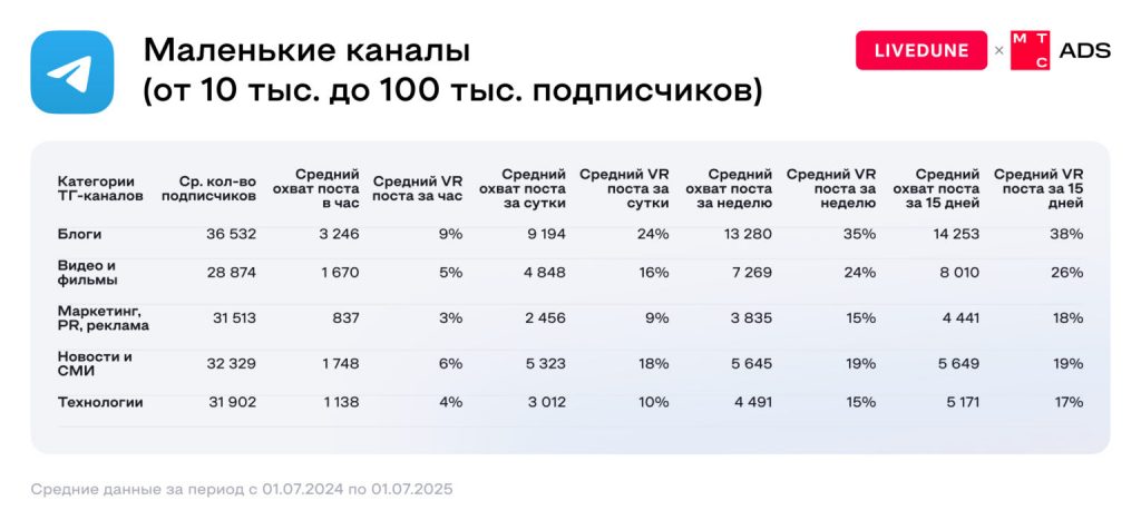 А вот по охватам (то есть сколько людей вообще увидит) заметно выстреливают каналы категории «Видео и фильмы».  Логика простая: в Telegram видео стало привычным форматом потребления контента, и многие каналы живут по модели “включил — залип”. Параллельно новостные платформы остаются супер-массовыми по подписной базе: у них часто самые большие аудитории (люди подписываются, чтобы быть в курсе), но вовлеченность там не всегда максимальная.